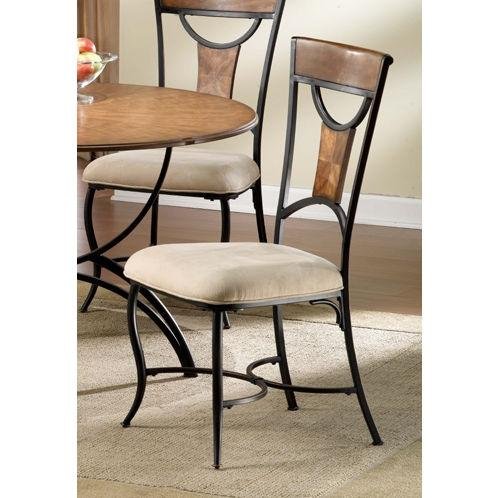 Black metal with copper highlights mix with dark maple veneers to accomplish the cool refreshing look of Hillsdales Pacifico dining chairs Clean lines with just enough curve versatile beige microfiber cushioned seats and neutral finishes make this transitionally designed dining chairs perfect f