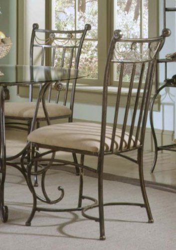 Resplendent in a rich black gold finish and draped in a metal rope motif the Camelot Dining Chairs Set of 4 feature an elegant scrolled base and versatile fabric seat on the chairs and barstools as well as intricate castings Color Black and Gold Size 3925H x 19W x 19D Draped in a metal rope